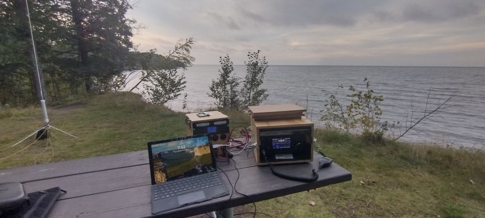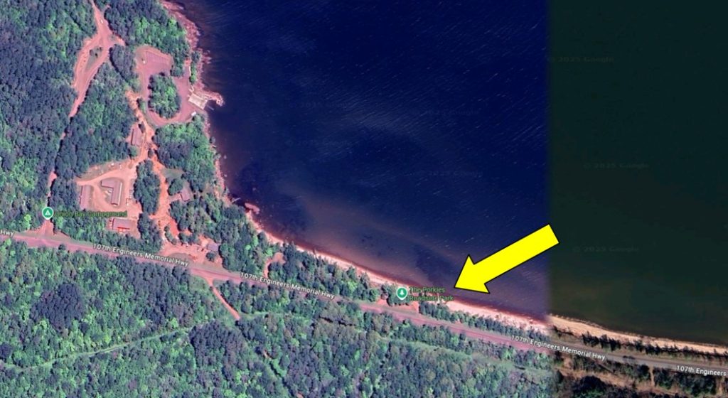 Given the size of this park there are not as many easy to go to POTA activation locations as most would expect but it does not seem to stop this park from getting activated frequently. For most of my activations my current setup includes more than a few items that need to be carried out to each site including my IC-7300 box, battery box and vertical antenna. I don’t mind lugging the gear a few hundred feet from my vehicle but with my current portable station, I prefer to setup within a few hundred feet of my vehicle. From inspecting satellite imagery and from driving through the park I determined that setting up at one of the two roadside pull of areas at the north end of the park and just past the park entrance would be the best location to deploy at. Both roadside pulloffs are located on Lake Superior and offer some but not an abundance of room for parking or setting up. If its a busy day in the park there is a good chance both of these roadside parks maybe taken. During a stop during the middle of the day, both roadside parks were fully utilized so we determined it would be best to stop in later in the day.