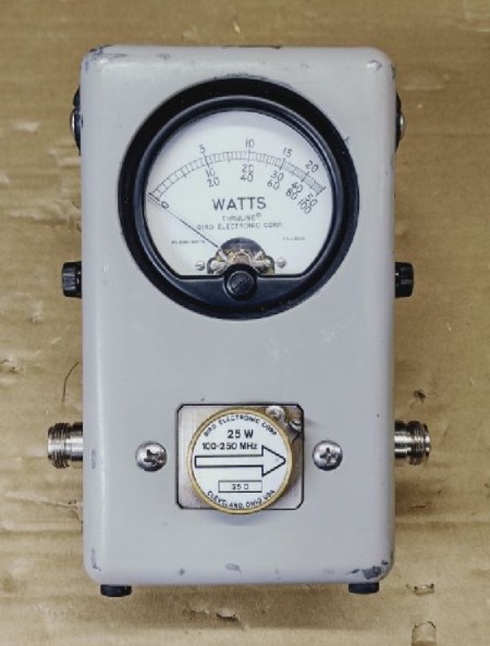 The Bird Thruline 43 Wattmeter is a quintessential piece of test equipment for the RF professional and tinker and is considered to be the timeless standard for measuring forward and reflected RF power. The device have a few downsides. One drawback is the fact that the device will only measure average power, in other words you can use it for measuring the power output from a CW, AM or FM signal but will not accurate measure peak power from a SSB signal. Another draw back of the device is the costly RF elements also known as slugs. Slugs for the device are generally specified by frequency range and full scale power level. Its not uncommon to see used slugs go for over $100 on ebay.