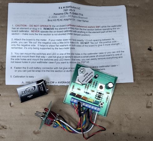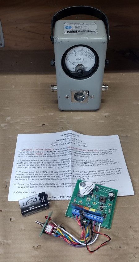While there seem be many clones of this peak kit at ham swaps and on ebay this particular kit was purchased from ebay seller jimmcjr. A peak kit add on does exist from Bird Electronics however its well known that this kit eats through 9V batteries.