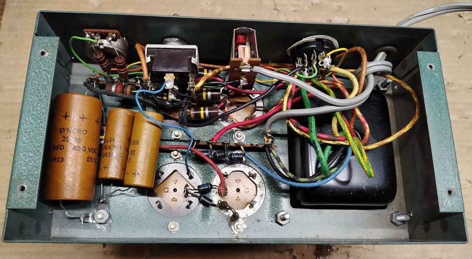 Most of the larger and heavier components are mounted on the top side and the smaller components utilize point to point wiring on the bottom side. As with most older electronics dried out electrolytic capacitors are frequently a failure point. For this unit particular I will not be powering it up until the rebuild is complete.