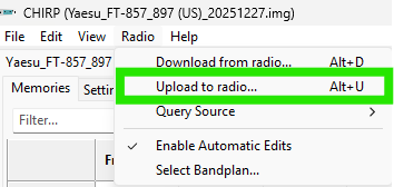 Below is the basic process for programming using CHIRP and the Yeasu FT-857.