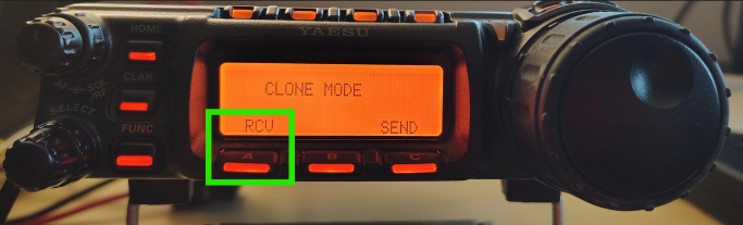 11. Once in clone mode, on the radio select RCV. Within CHRIP go to Radio > Upload to Radio.