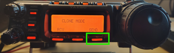 6.When prompted by CHIRP to do so, on the radio (in Clone Mode) select SEND. At this point the radio will send its existing memory and memory format over to CHIRP.