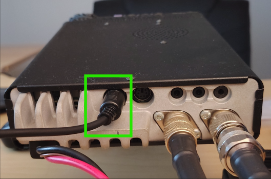 1. Locate the CAT port on the back of the radio and carefully observe the orientation of the connector contacts. Plug in the programming cable into the CAT port on the rear of the radio and connect the USB end to a computer. Be sure that you are plugging the cable into the CAT port and not the DATA port, doing so may cause you to bend pins on your programming cable.