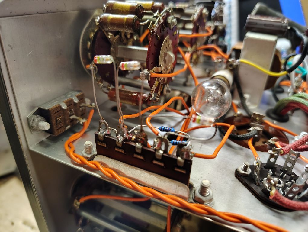 To clean up the contacts on the rotary switches and on-off switch I gave each a quick spritz of Deoxit. Where the contacts were accessible I used a cotton swap and actuated the switches a few to times to clean them up.