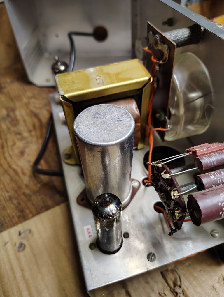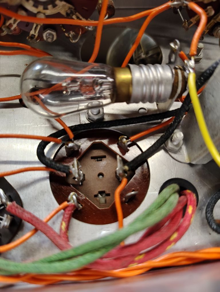 When getting the equipment home I removed the rear cover and did an initial visual inspection and the workmanship and condition of this equipment seemed positive. I pulled the tubes in the audio generator and put them on a tube test and all tested in good condition. I also tested the instrument incandescence lights and tungsten lamp, its worthwhile to mention that when the unit is operating you should not see a the tungsten lamp glow.