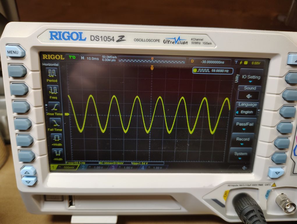 If you have access to a modern oscilloscope it is really a great tool to use to not only visually see the generated sine wave, but measure the frequency and amplitude (in VRMS ). It’s worth mentioning that the Rigol DS1054 Oscilloscope that I use includes two different frequency counters, one that performs the measurement using hardware while the other that is measured using software. I generally keep both enabled but for most situations the hardware frequency counter accessible by going to Measure > Counter menu is often more accurate.