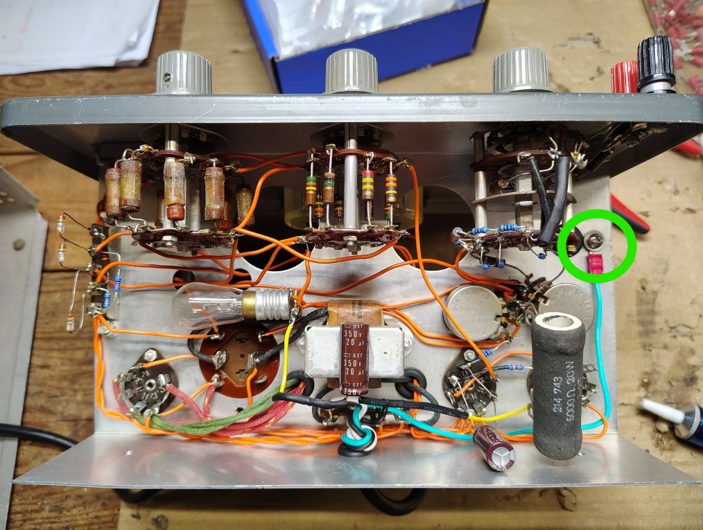 When removing the old capacitor I became a little concerned that the bulb on the inside of the unit may also be another return path through the metal work of the chassis but was relieved after I tested it and it was not.
